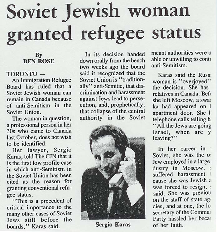 | Soviet Jewish woman granted refugee status | The Canadian Jewish News (Canada) | 21-Aug-91 | Download |