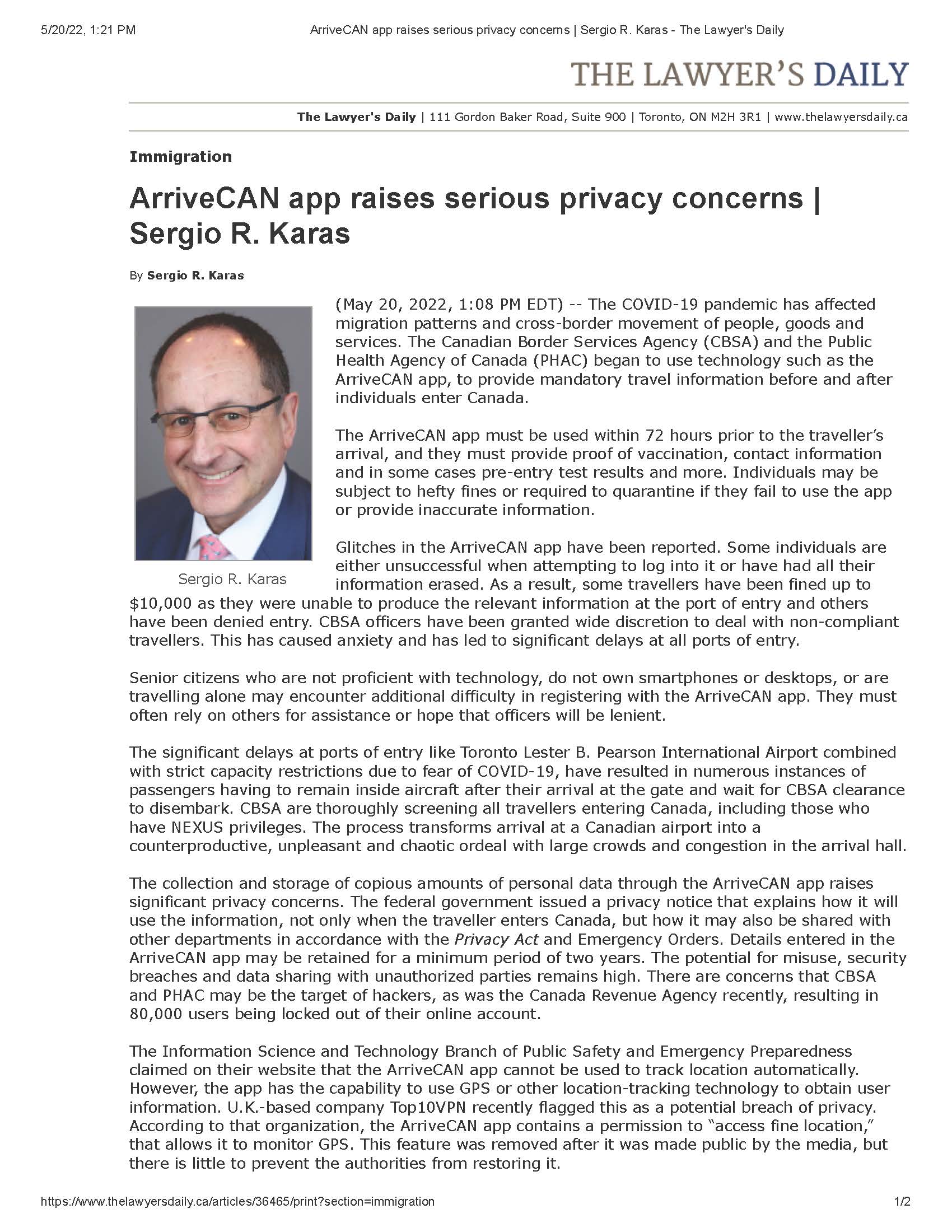 | Data security and bias among primary concerns with AI in immigration law: Sergio Karas | Canadian Lawyer (Canada) | 04-Apr-23 | Download |