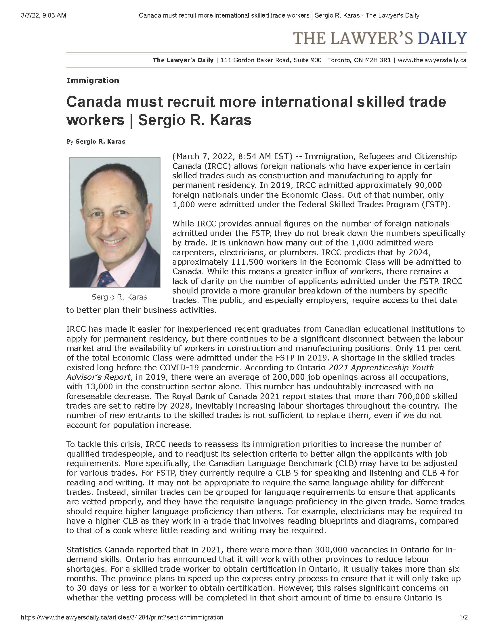 | Canada should emphasize STEM-focused immigration | Law360 Canada | 28-Jan-25 | Download |