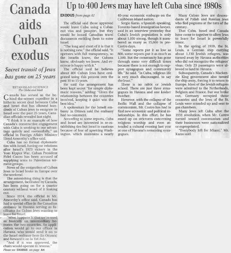 | Canada Aids Cuban Exodus | The Globe and Mail (Canada) | 11-Oct-99 | Download |