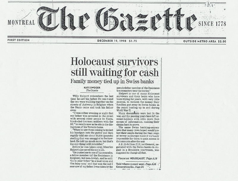 | Holocaust Survivors Still Waiting for Cash | The Gazette (Montreal) | 19-Dec-98 | Download |