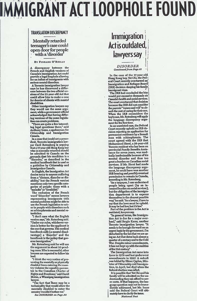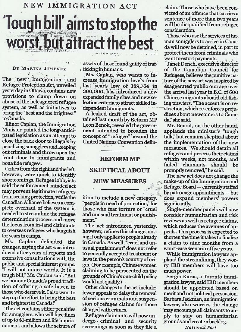| Immigrant Act Loophole Found | National Post (Canada) | 27-Dec-00 | Download |