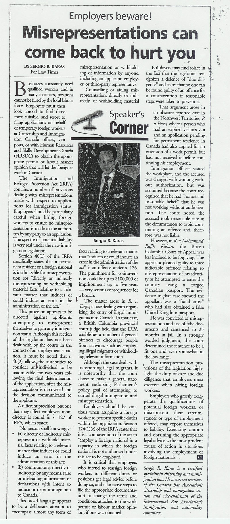 | Authorities investigating job-offer fraud | Law Times (Canada) | 30-Jun-04 | Download |