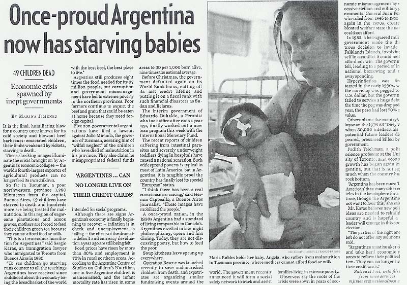| Once -Proud Argentina now has starving babies | National Post (Canada) | 18-Jan-03 | Download |