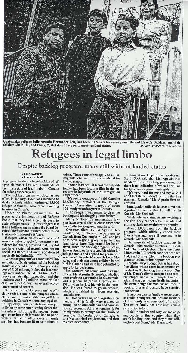 | Refugees in legal limbo | The Globe and Mail ( Canada) | 13-Sep-94 | Download |