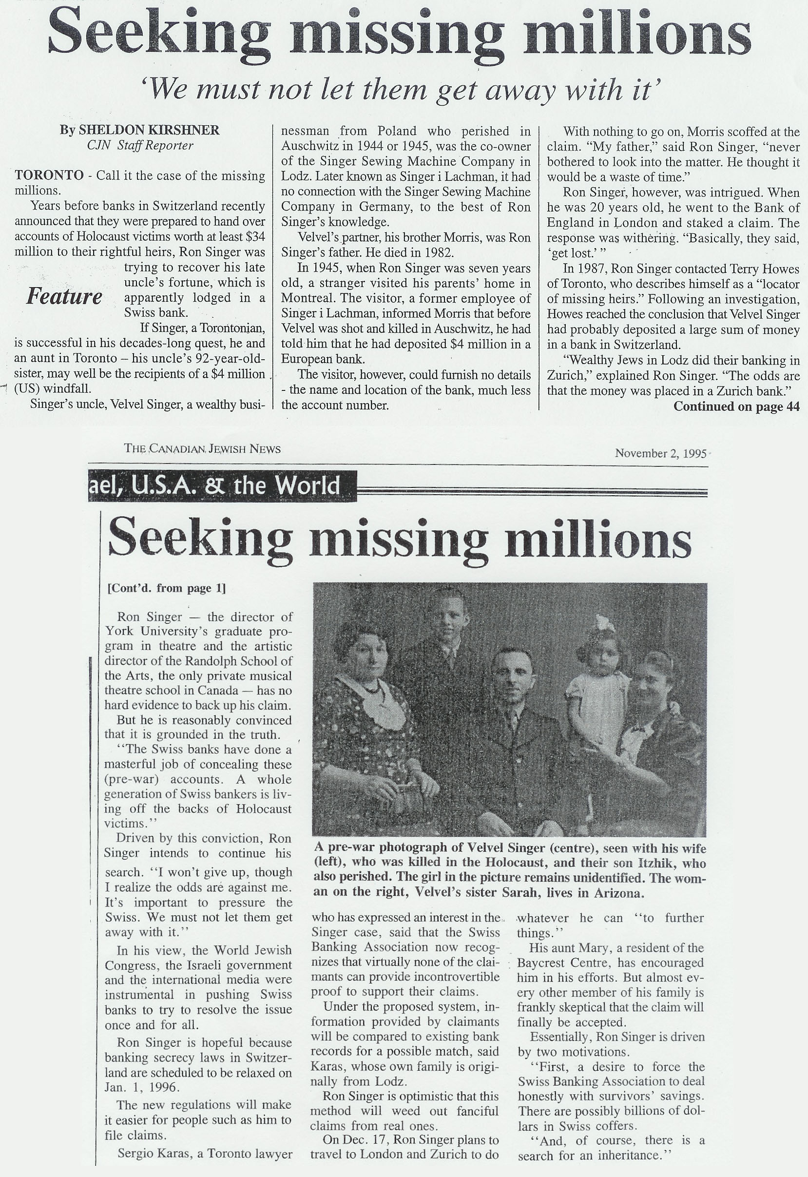 | Seeking missing millions | The Canadian Jewish News (Canada) | 02-Nov-95 | Download |