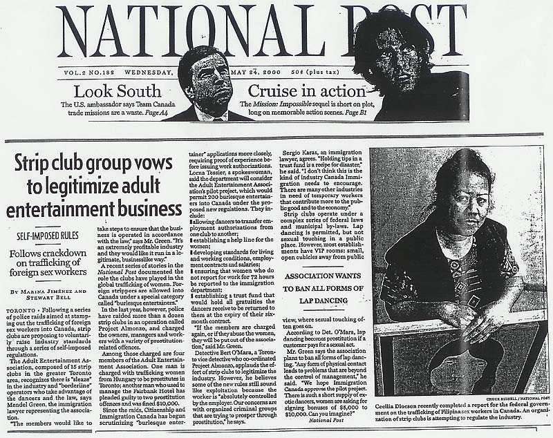 | Strip club group vows to legitimize adult entertainment business | National Post (Canada) | 24-May-00 | Download |