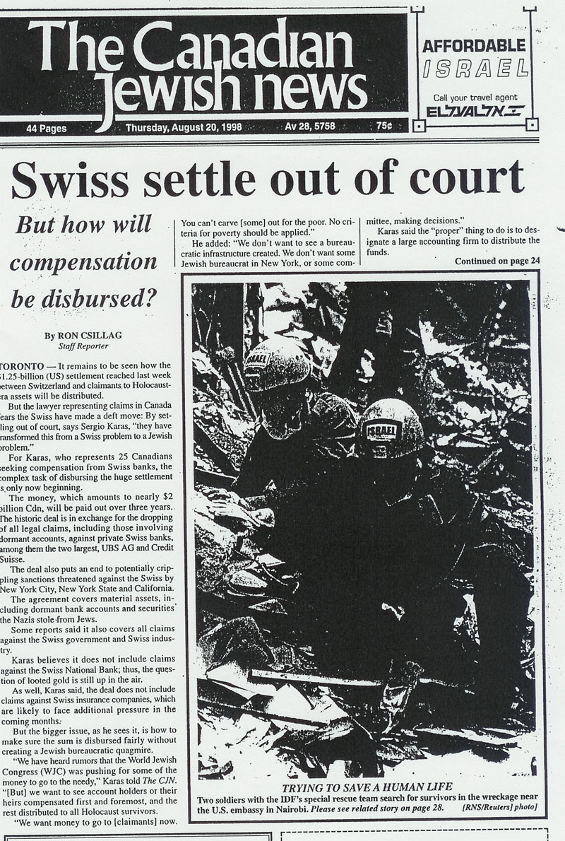 | Swiss Settle out of Court | The Canadian Jewish News (Canada) | 20-Aug-98 | Download |