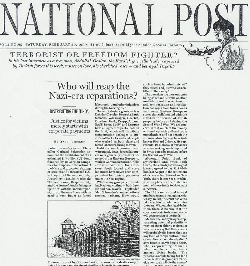 | Who will reap the Nazi-era reparations | National Post (Canada) | 20-Feb-99 | Download |